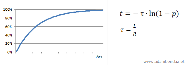 časovou konstantu [tau], která se vypočítá z indukčnosti cívky L a z celkového stejnosměrného odporu R.