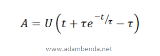 U je připojené stejnosměrné konstantní napětí, e je konstanta (Eulerovo číslo), A je výsledná elektrická práce, která je pro